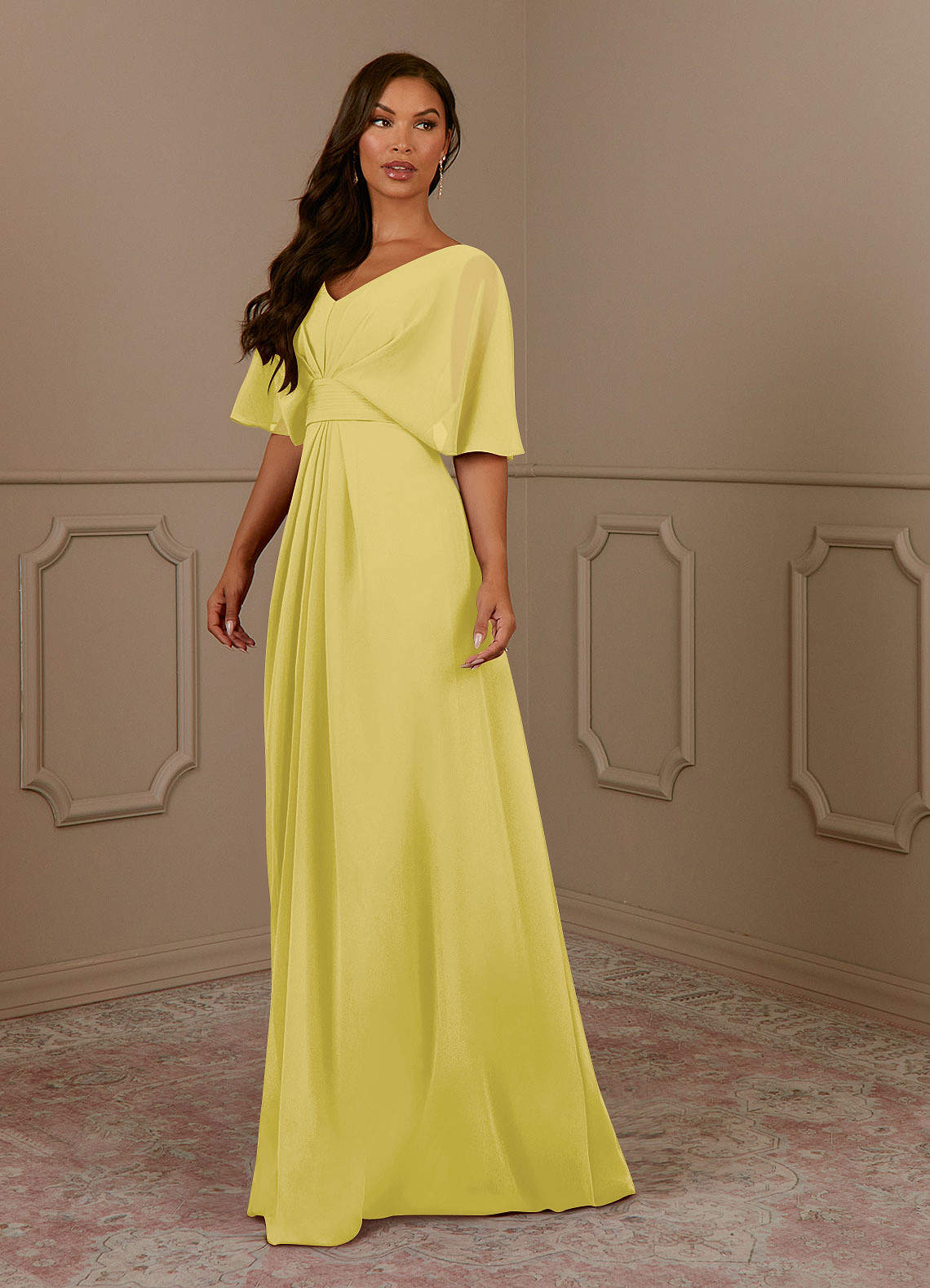 Vestido de Canario de Gasa de Corte en A con Cuello en V Plisado