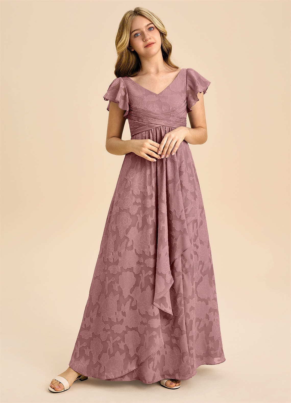 Vestido de Rosa Polvorienta de Devorado Floral de Corte en A con Plisado