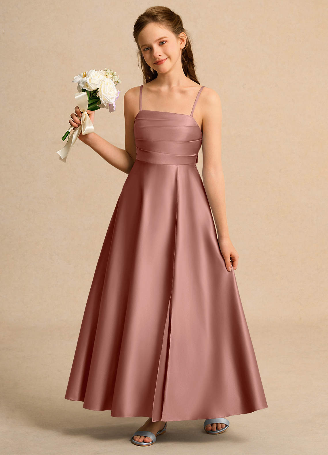 Vestido de Rosa De Cedro de Satin Mate de Corte En A con Plisado