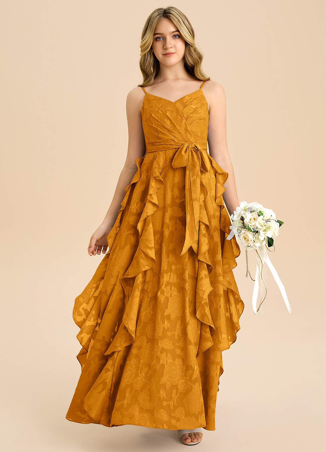 Vestido de Caramelo de Devorado Floral de Corte en A con Plisado