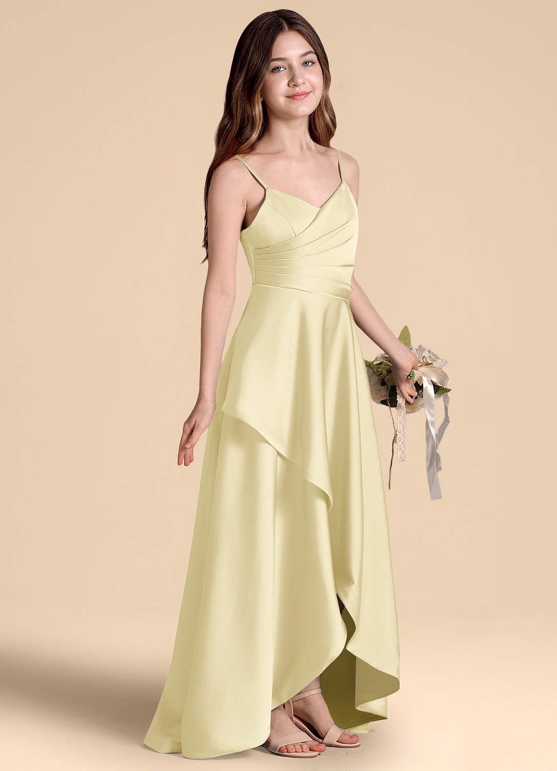 Vestido de Sorbete De Limón de Satén Elástico de Corte en A con Plisado