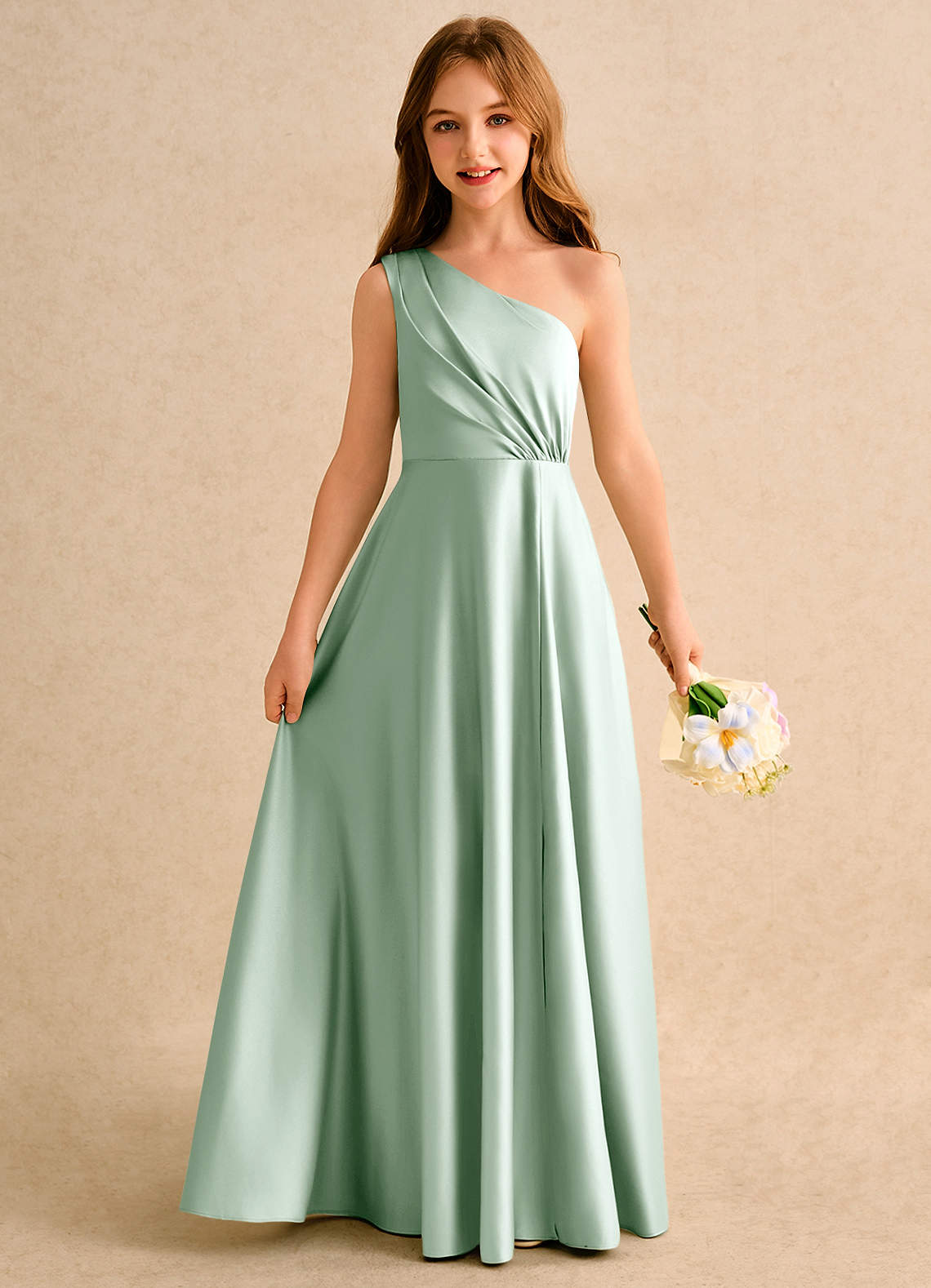 Vestido de Agave de Satin Mate de Corte en A con Hombro unilateral