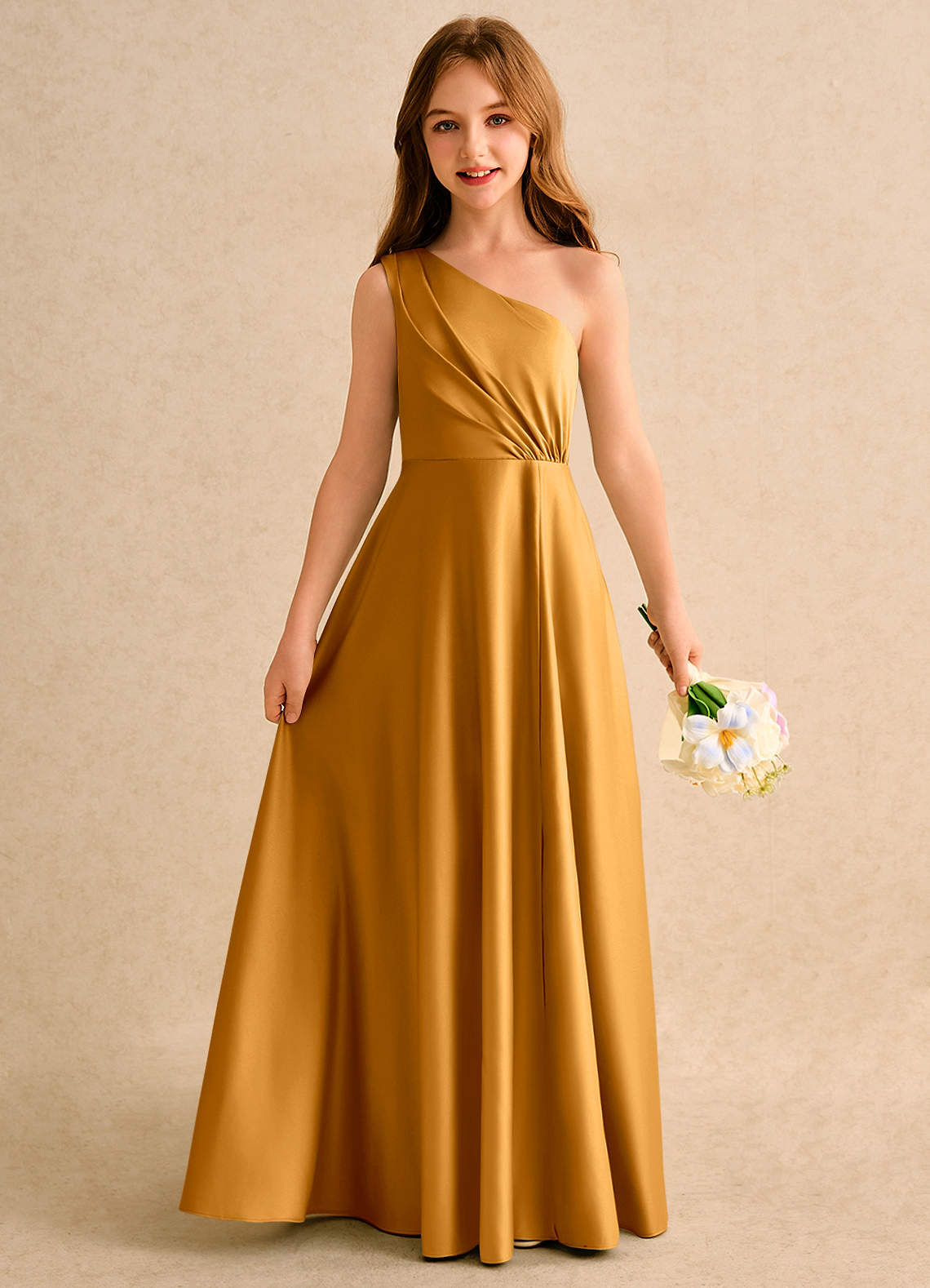 Vestido de Caramelo de Satin Mate de Corte en A con Hombro unilateral