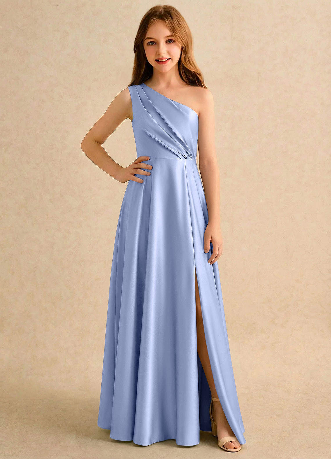 Vestido de Hielo de Satén Elástico de Corte en A con Hombro unilateral