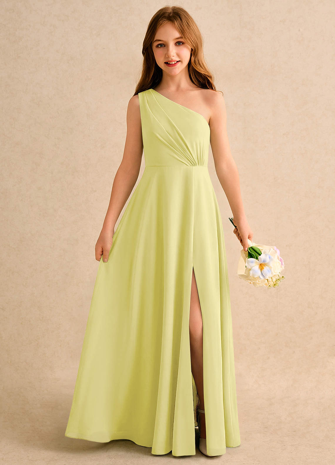 Vestido de Sorbete De Limón de Gasa de Corte en A con Hombro unilateral