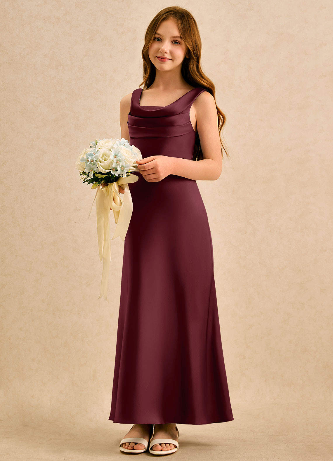 Vestido de Cabernet de Satén Elástico de Corte en A con Plisado