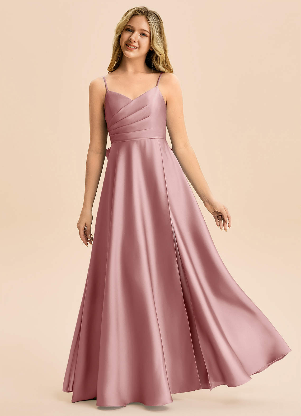 Vestido de Rosa Polvorienta de Satén Elástico de Corte en A con Plisado