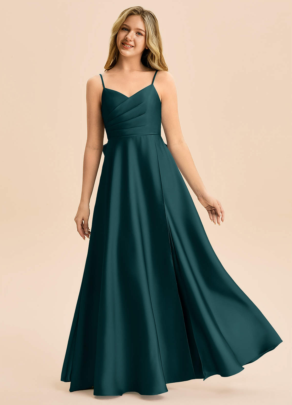 Vestido de Pino de Satén Elástico de Corte en A con Plisado