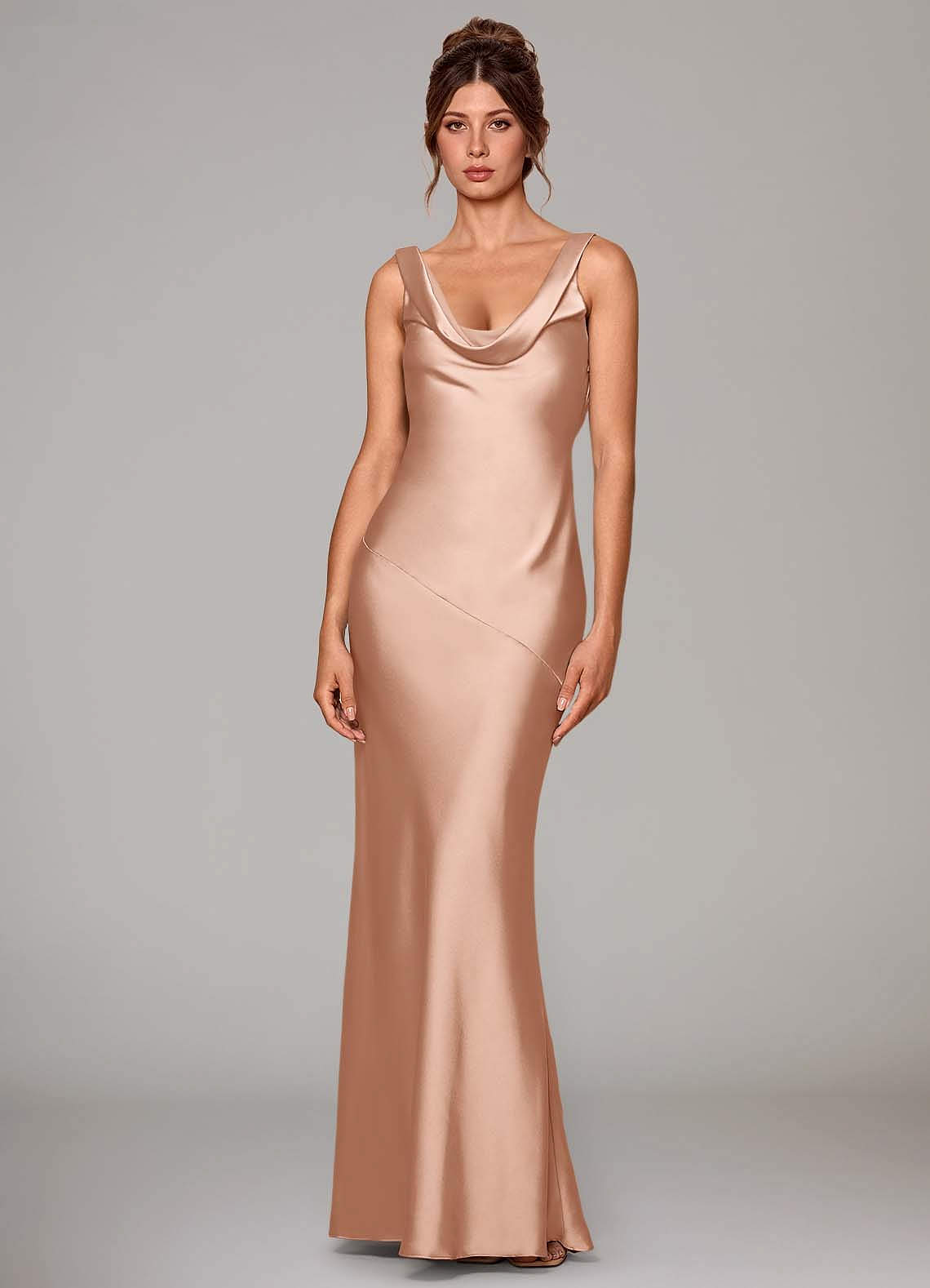 Vestido de Oro Rosa de Satén Elástico de Corte Sirena
