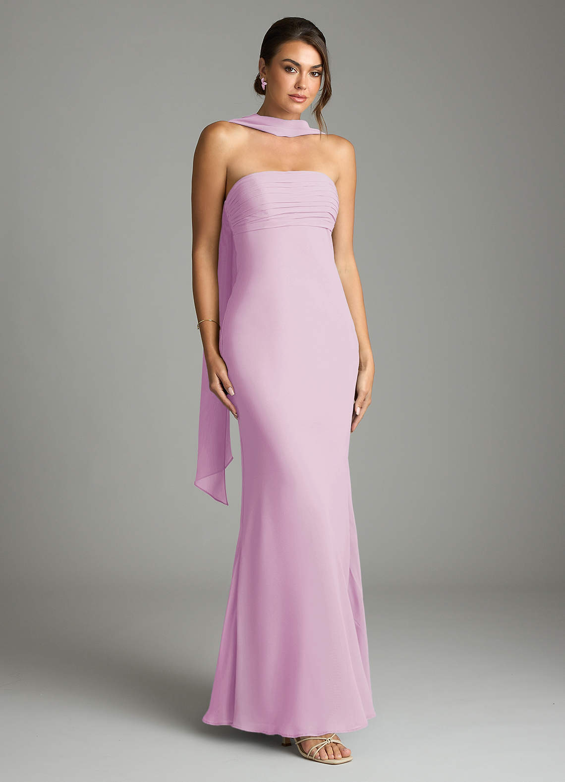 Vestido de Rosa Caramelo de Gasa de Corte Sirena con Sin tirantes