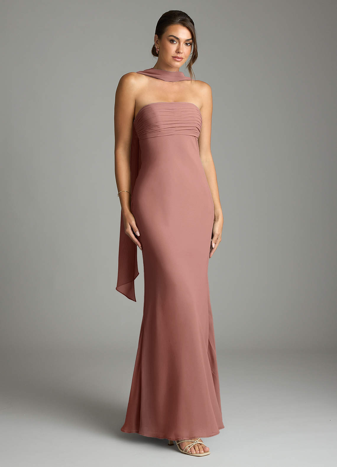 Vestido de Rosa De Cedro de Gasa de Corte Sirena con Sin tirantes