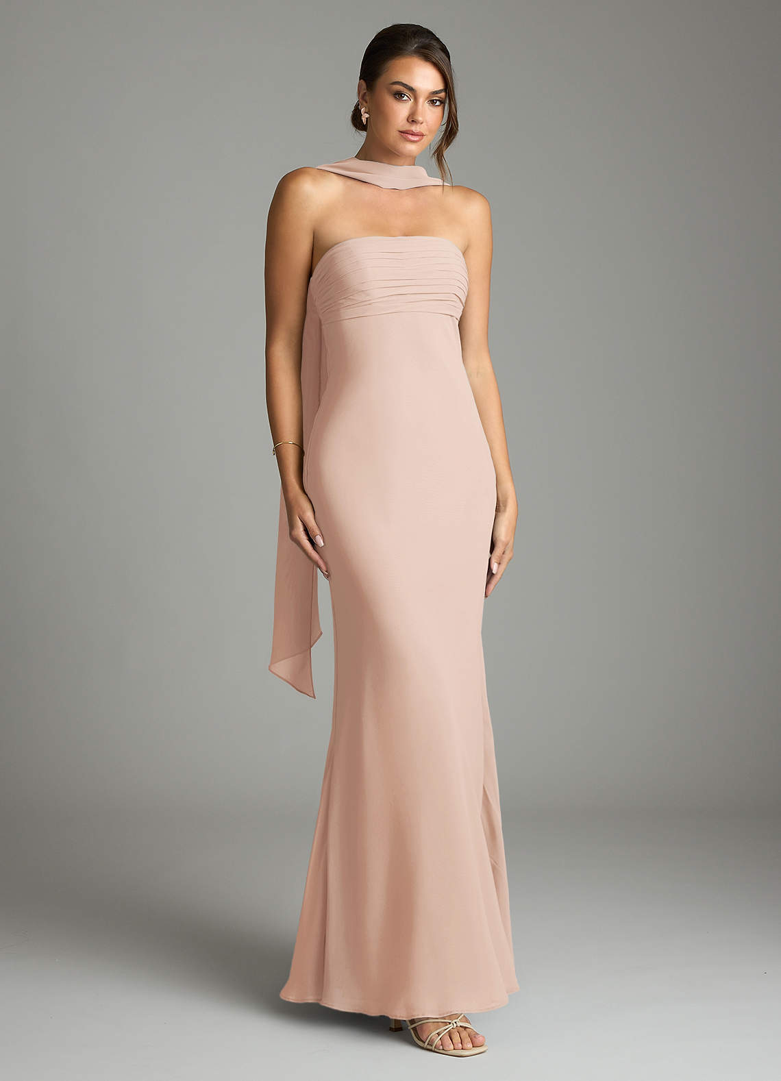 Vestido de Rosa Inglesa de Gasa de Corte Sirena con Sin tirantes
