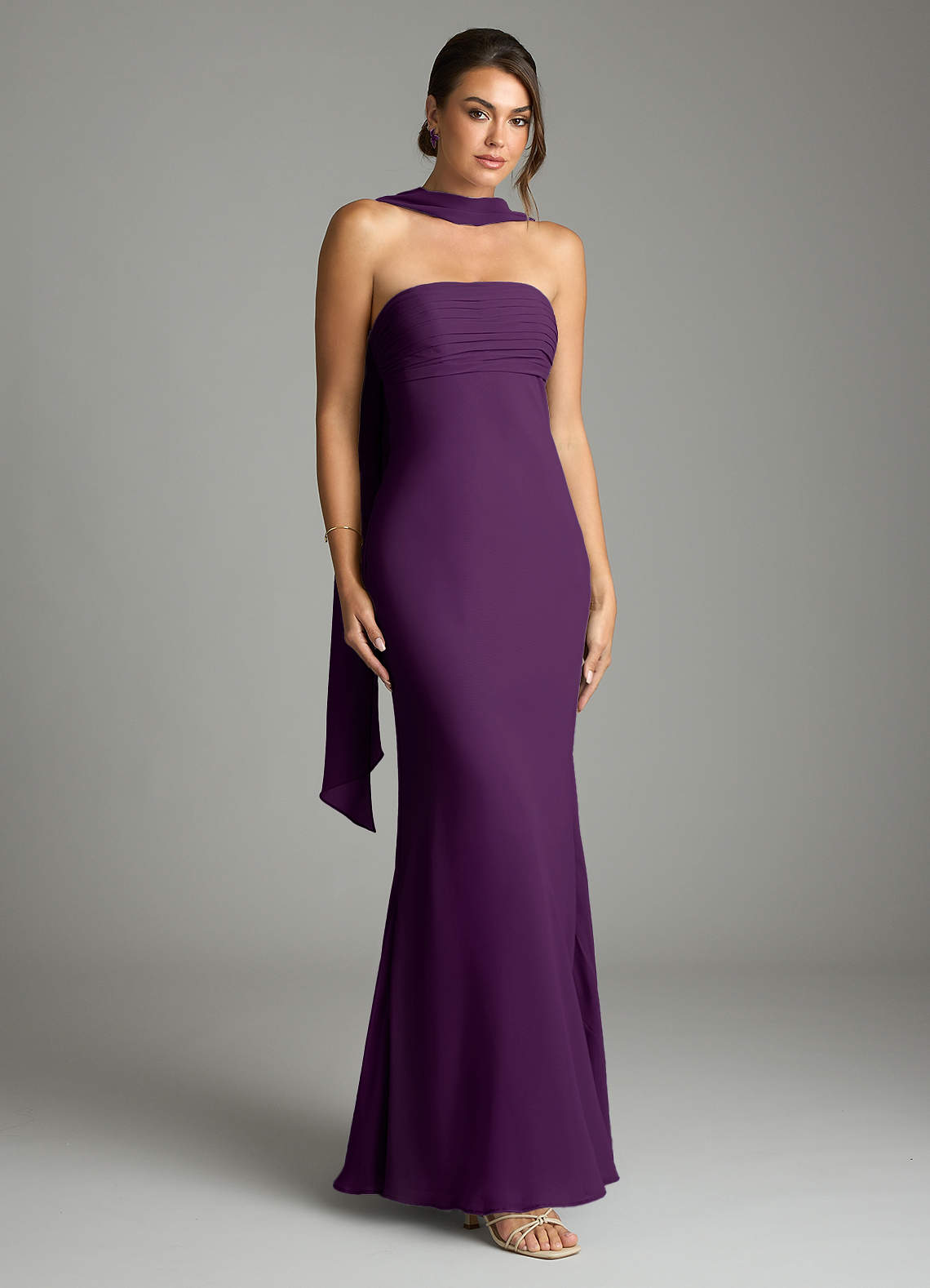 Vestido de Uva de Gasa de Corte Sirena con Sin tirantes
