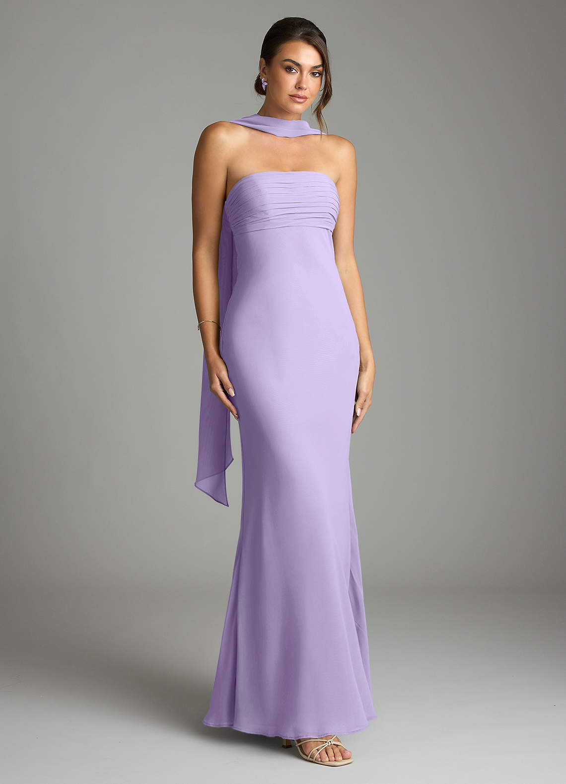Vestido de Lila de Gasa de Corte Sirena con Sin tirantes