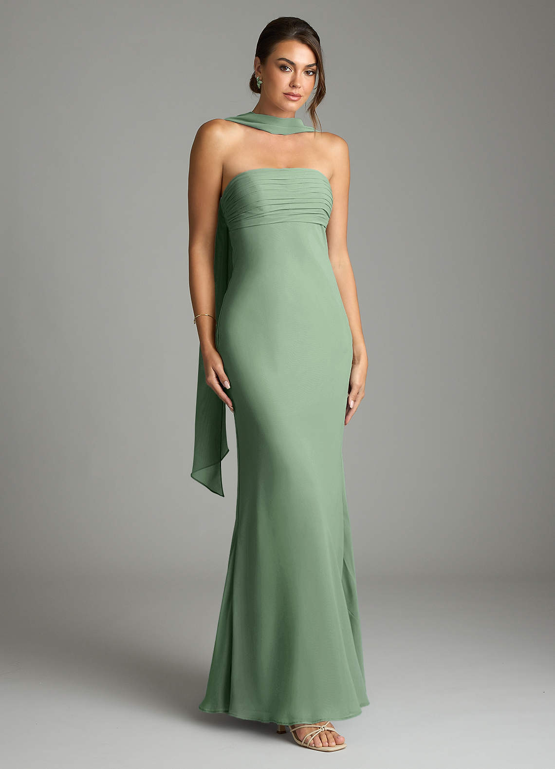 Vestido de Matcha de Gasa de Corte Sirena con Sin tirantes