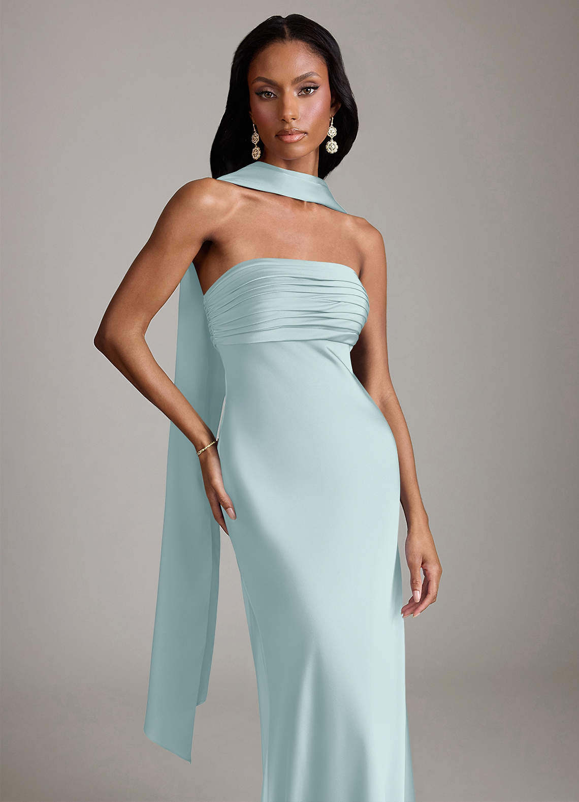 Vestido de Neblina de Satén Elástico de Corte Sirena con Sin tirantes