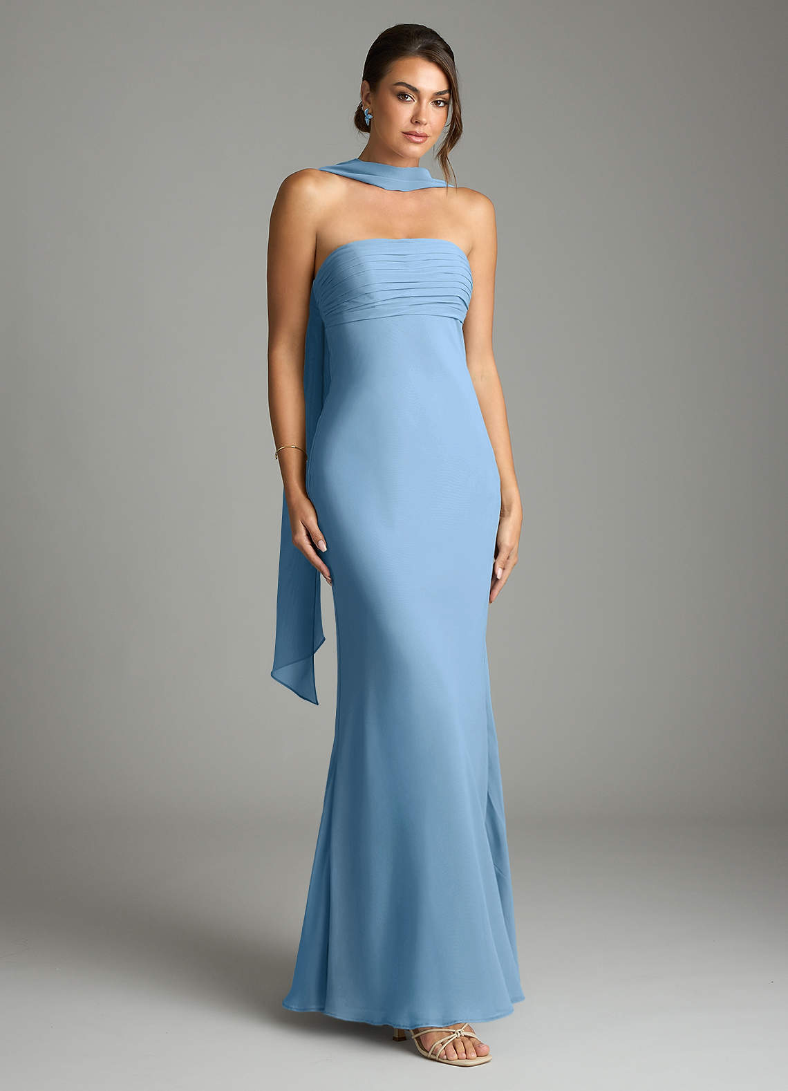 Vestido de Azul Acero de Gasa de Corte Sirena con Sin tirantes
