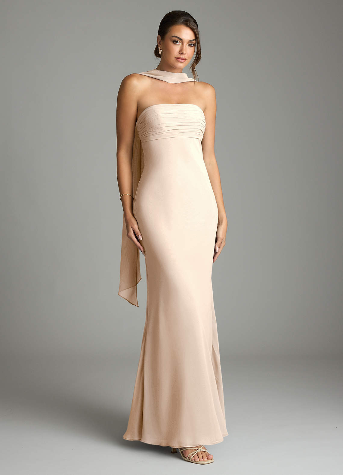 Vestido de Alabastro Blanco de Gasa de Corte Sirena con Sin tirantes