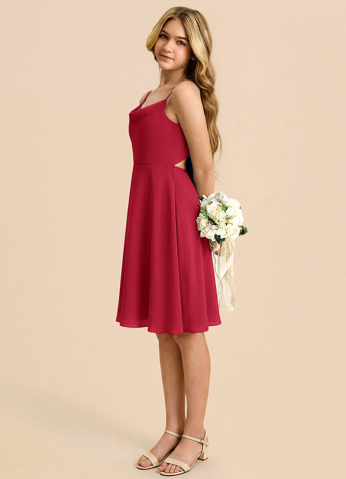 Vestido de Escarlata de Gasa de Corte en A con Lazo