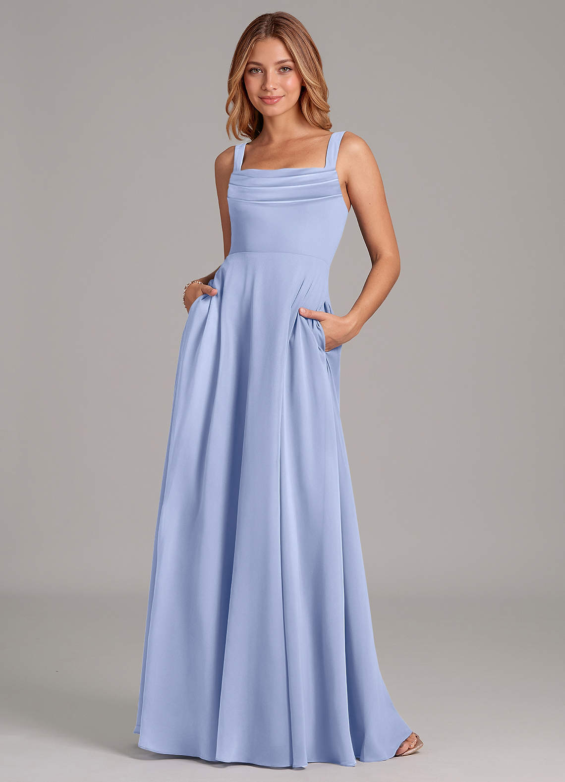 Vestido de Hielo de Gasa de Corte en A con Plisado