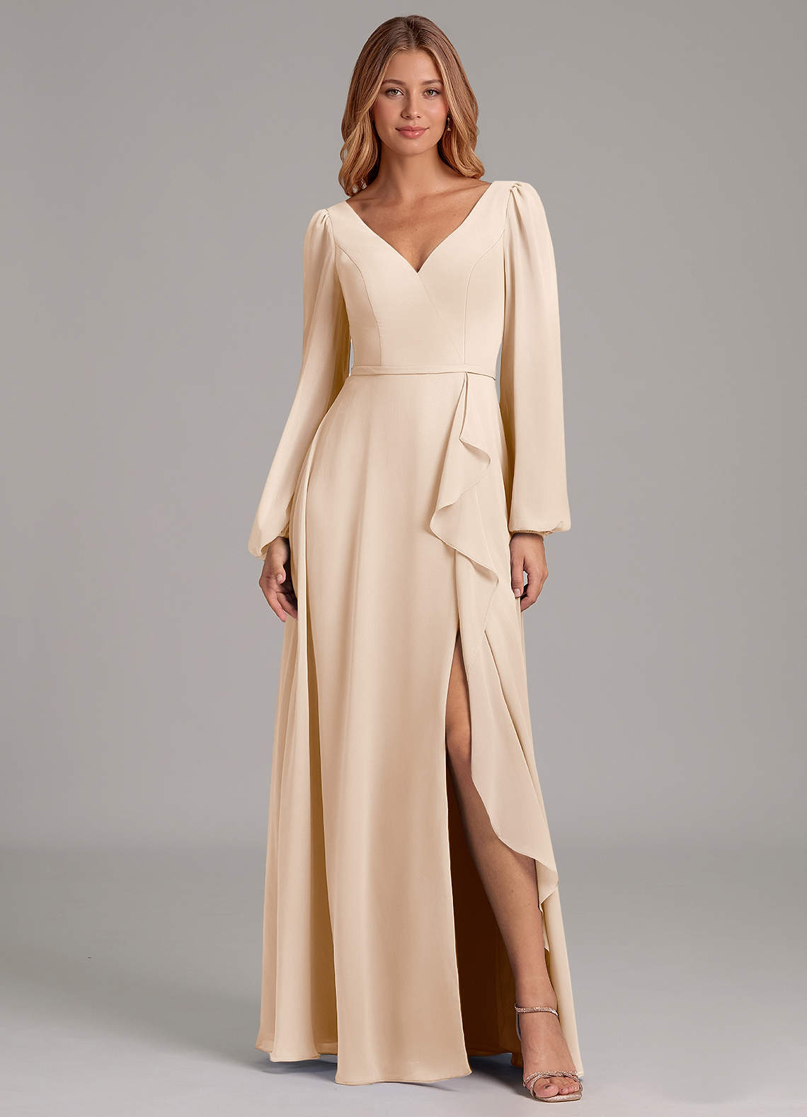 Vestido de Alabastro Blanco de Gasa de Corte en A con Manga larga