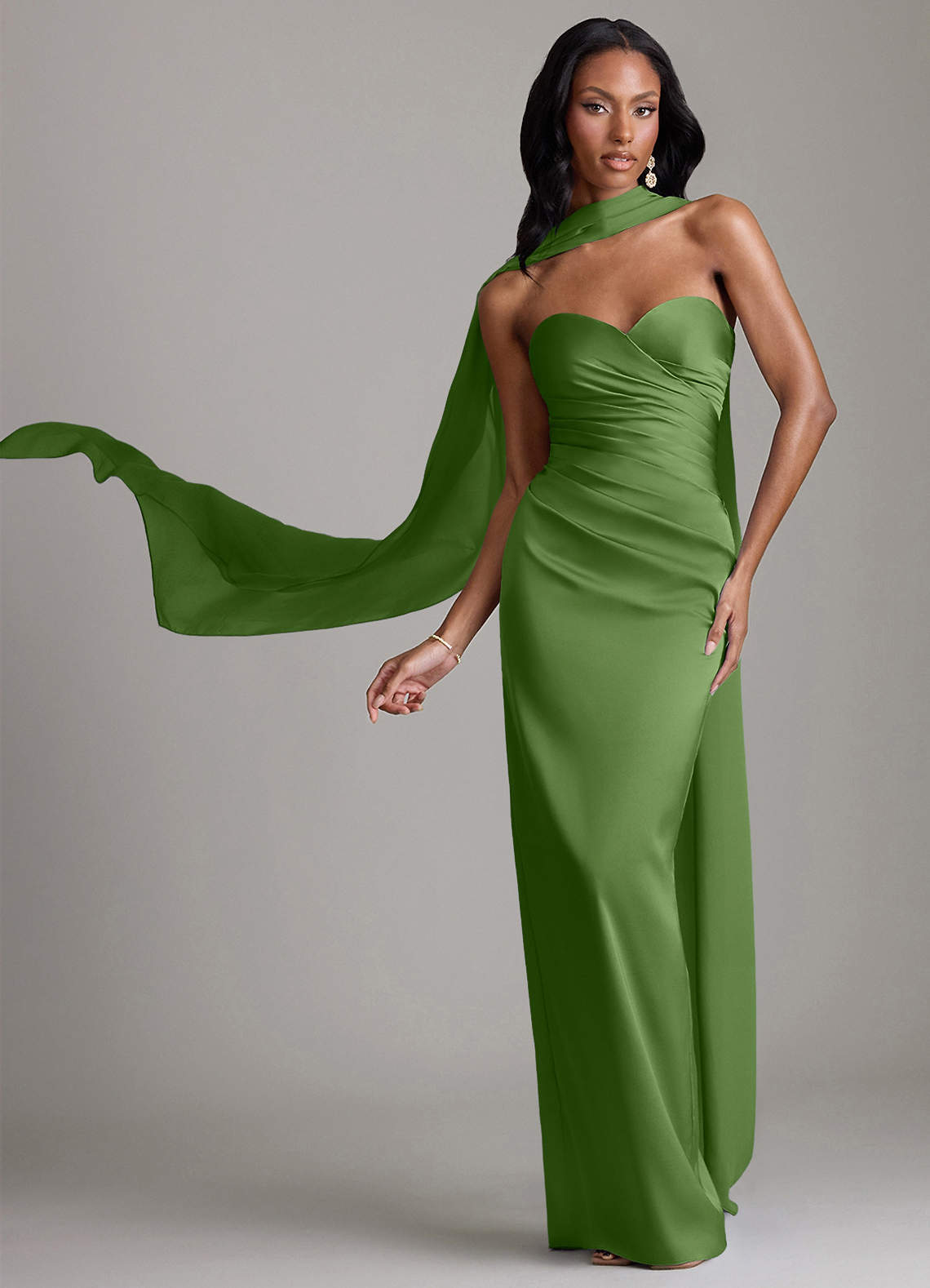 Vestido de Albahaca de Satén Elástico de Corte Recto con Sin tirantes