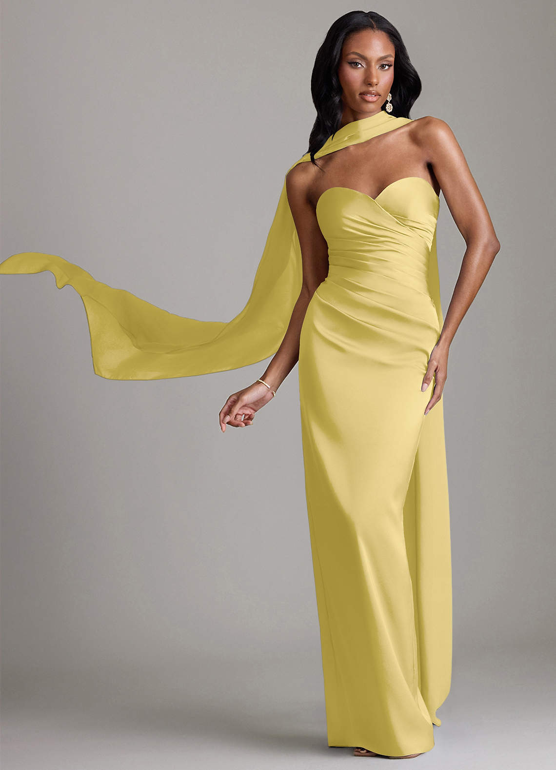 Vestido de Canario de Satén Elástico de Corte Recto con Sin tirantes