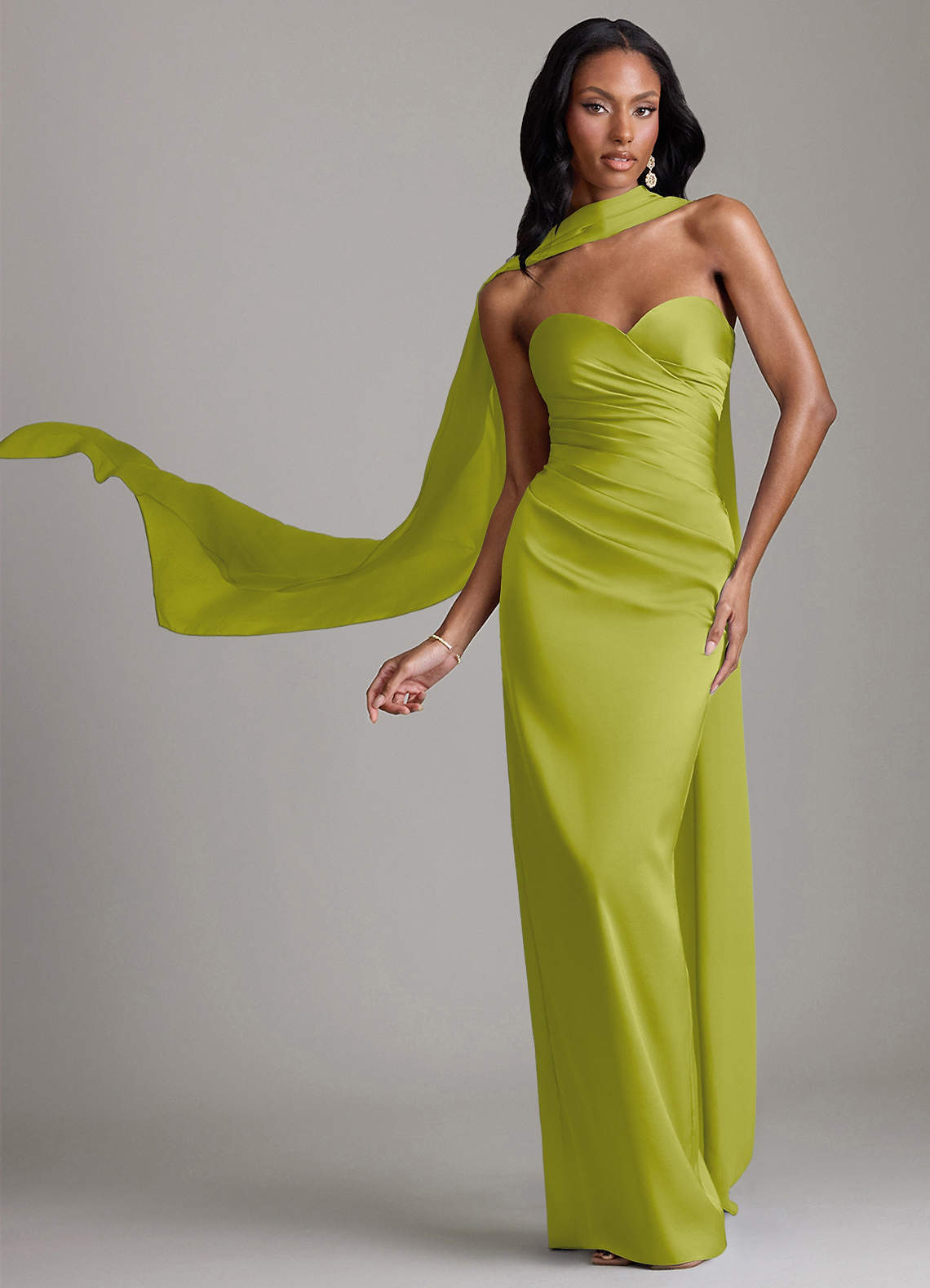 Vestido de Hierba De Limón de Satén Elástico de Corte Recto con Sin tirantes