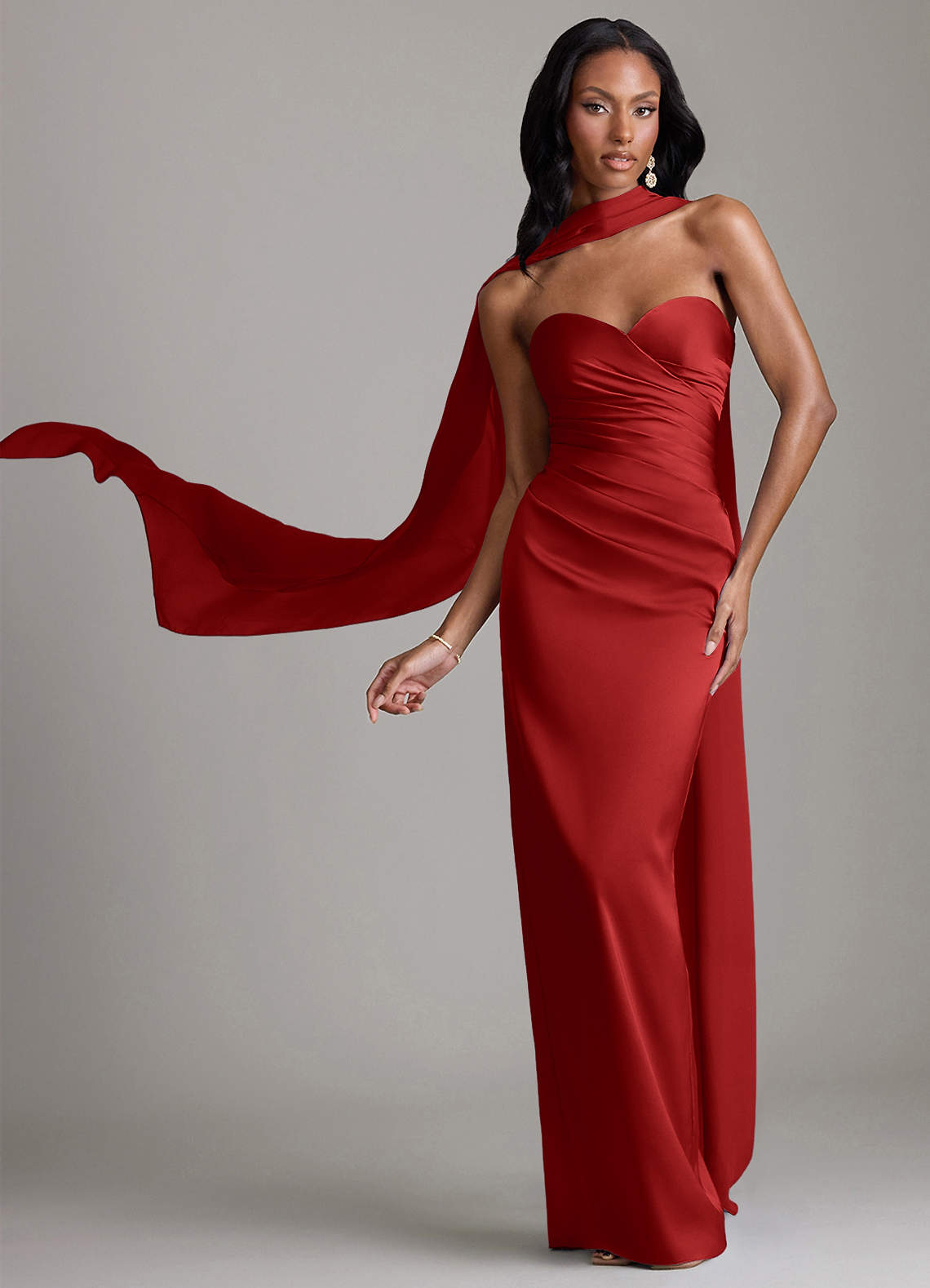 Vestido de Granada de Satén Elástico de Corte Recto con Sin tirantes