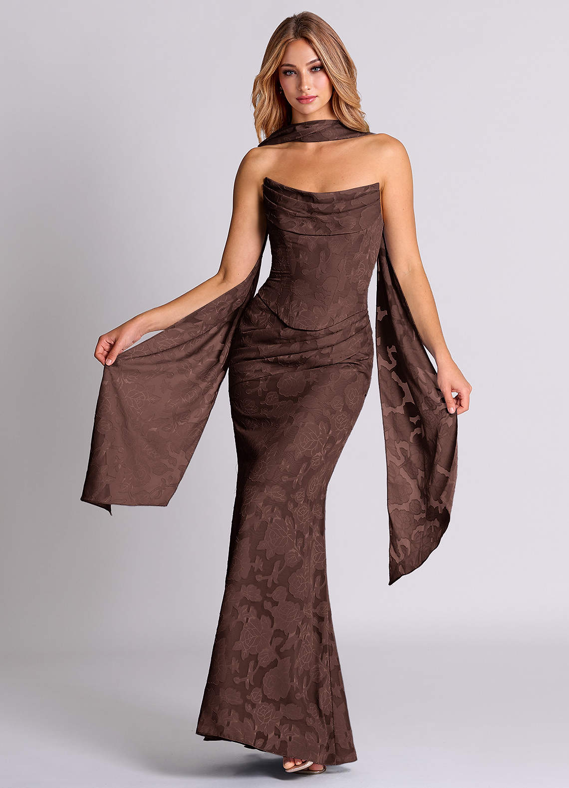 Vestido de Ganache de Devorado Floral de Corte Sirena Convertible con Corsé