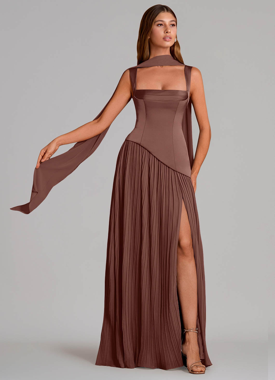 Vestido de Expresado de Satén Elástico de Corte en A con Plisado