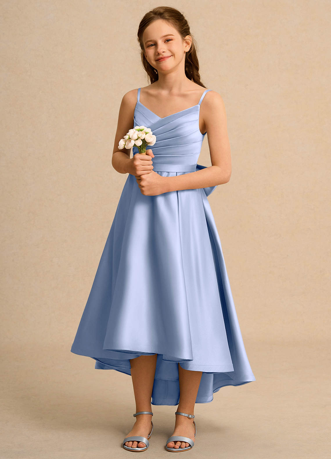 Vestido de Hielo de Satin Mate de Corte En A con Plisado