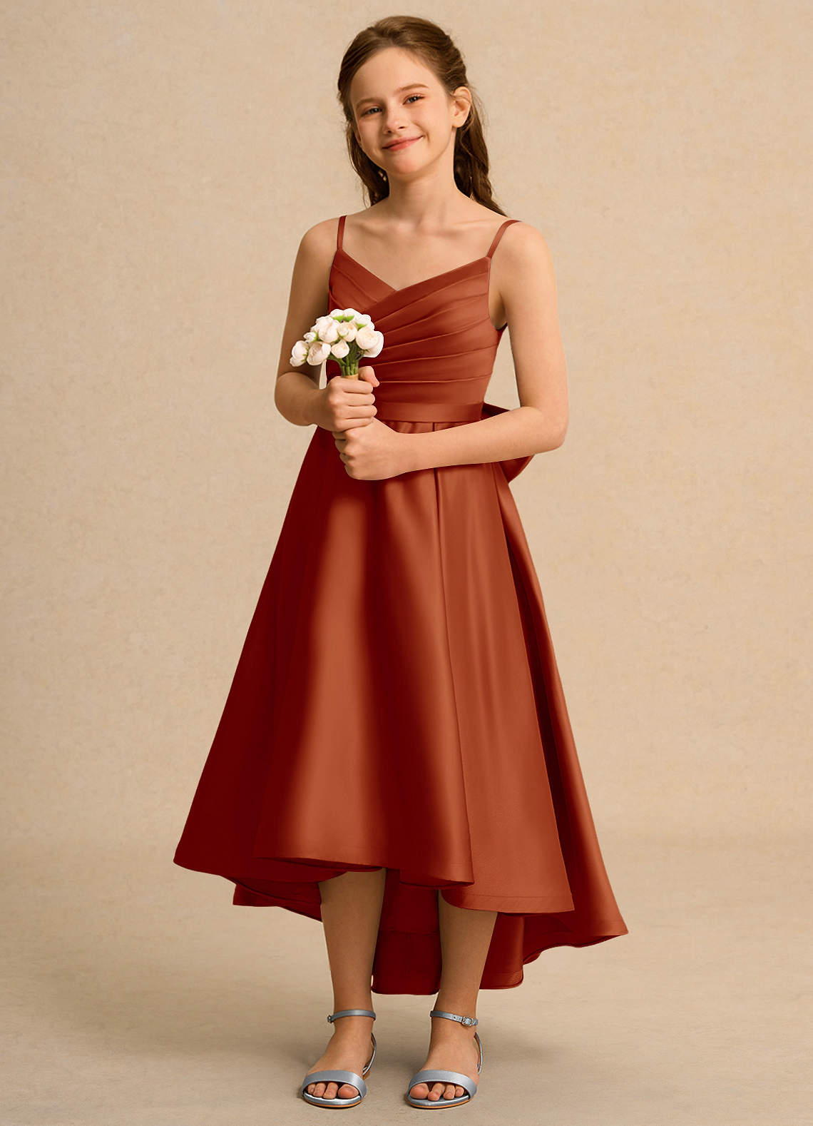 Vestido de Pimenton de Satin Mate de Corte En A con Plisado