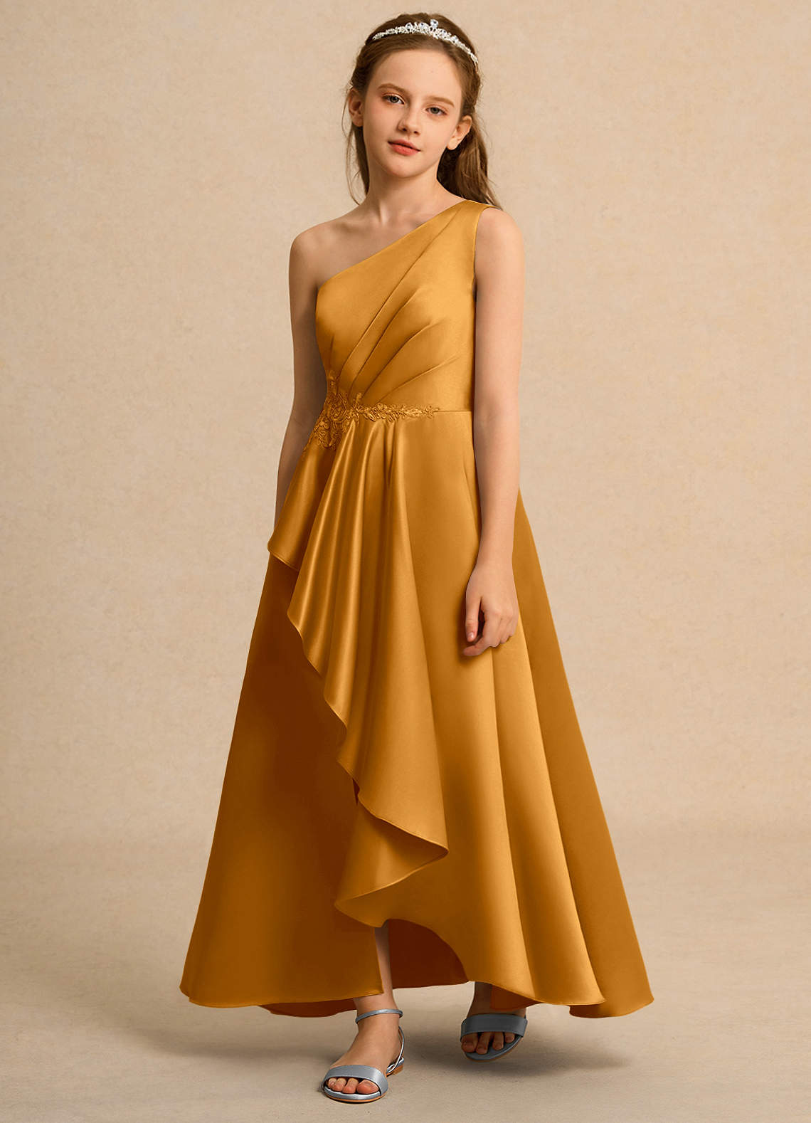 Vestido de Caramelo de Satin Mate de Corte En A con Encaje