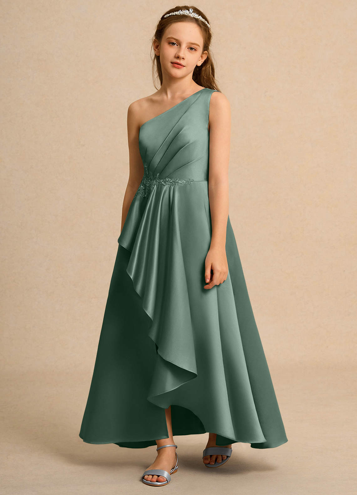 Vestido de Eucalipto de Satin Mate de Corte En A con Encaje