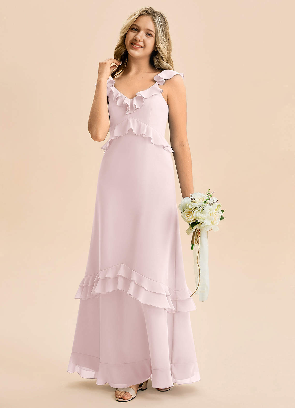 Vestido de Rosa Rubor de Gasa de Corte en A con Volante