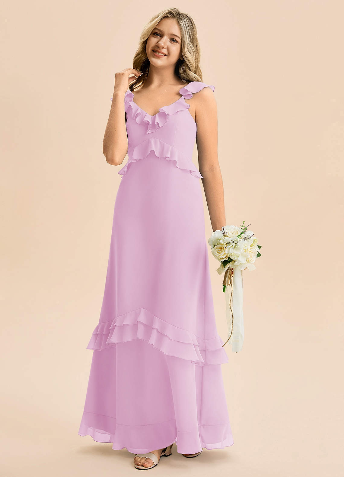 Vestido de Rosa Caramelo de Gasa de Corte en A con Volante