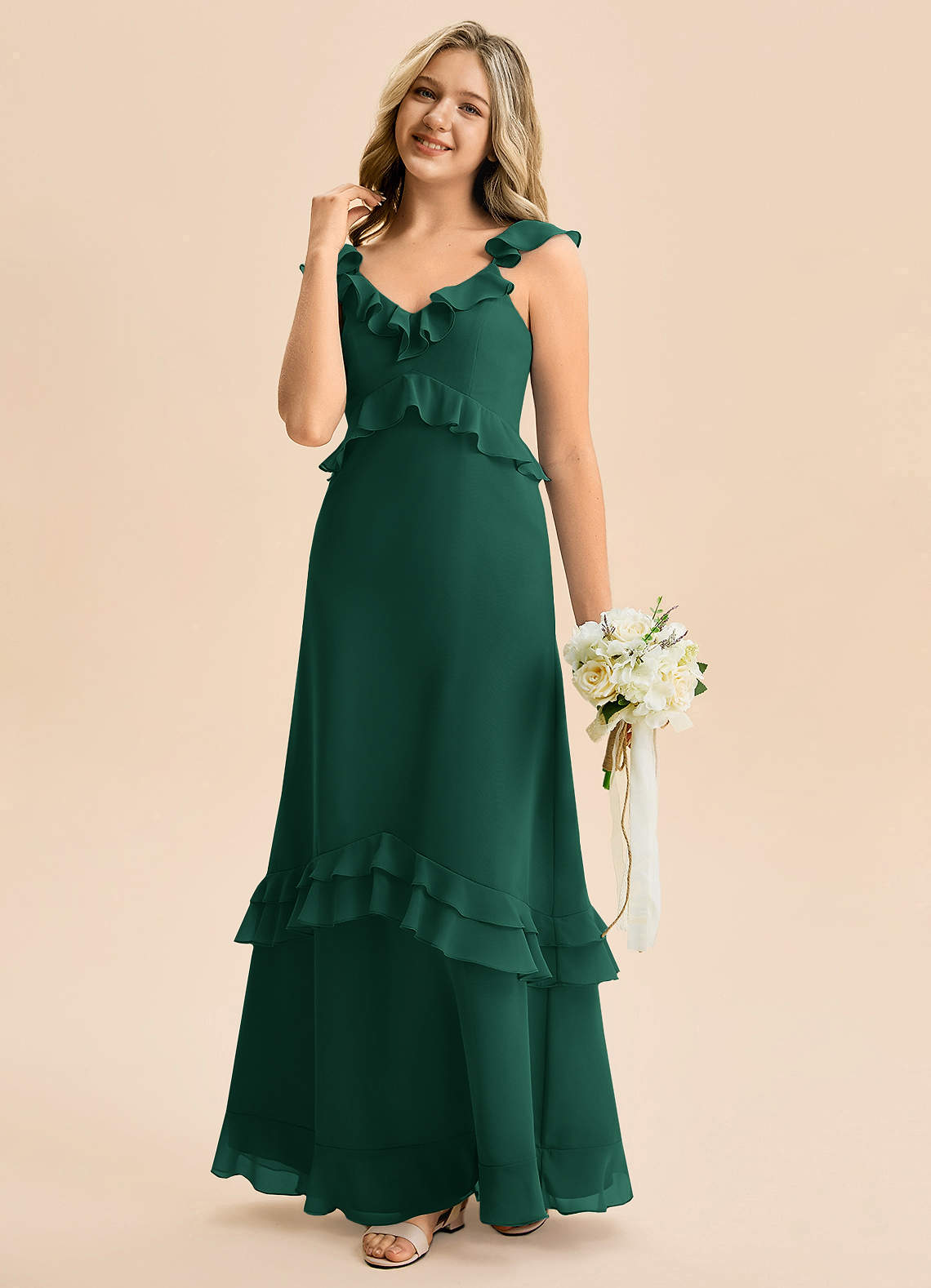 Vestido de Esmeralda de Gasa de Corte en A con Volante