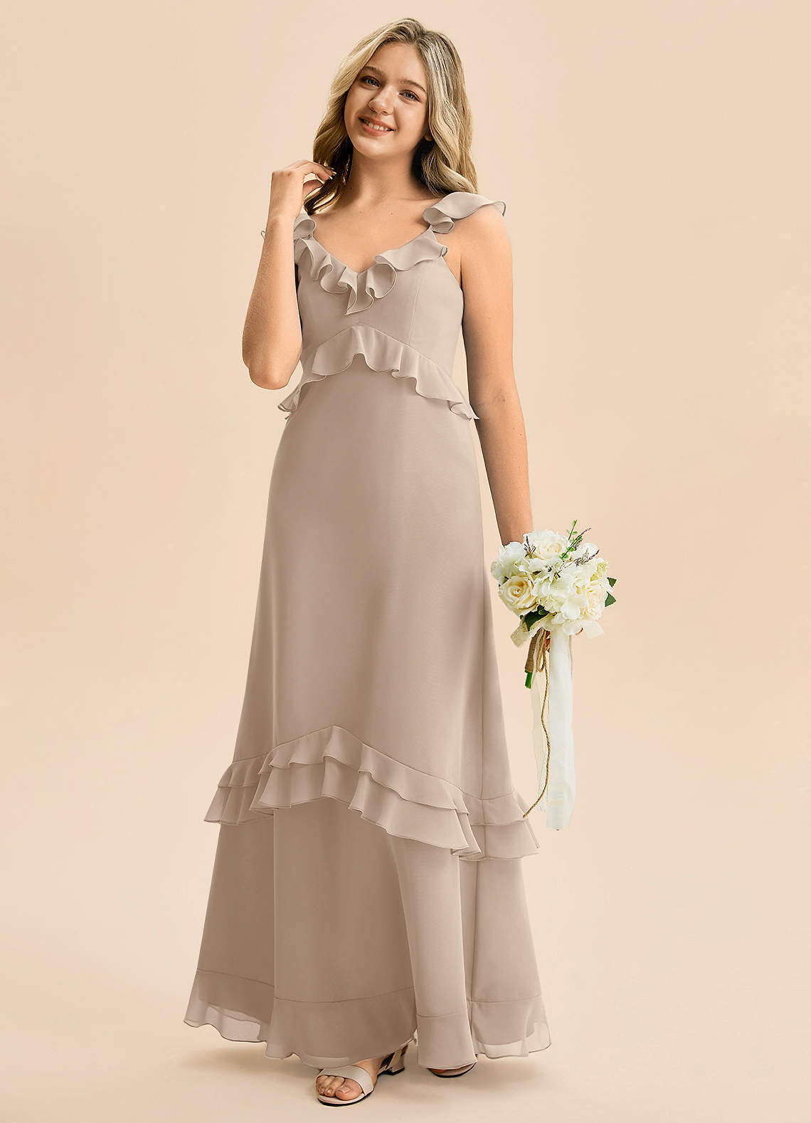Vestido de Gris Pardo de Gasa de Corte en A con Volante