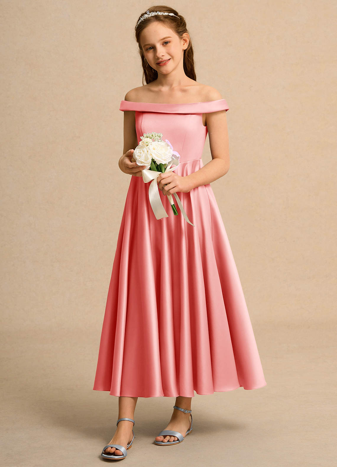 Vestido de Coral de Satin Mate de Corte en A con Plisado