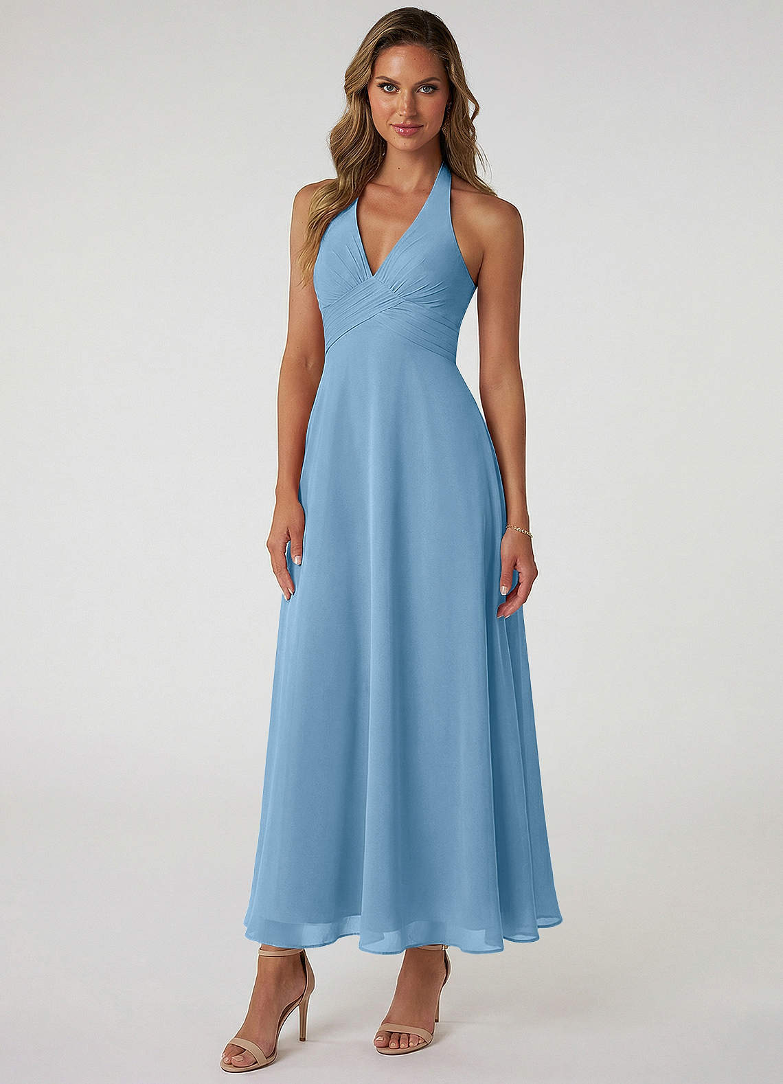 Vestido de Azul Acero de Gasa de Corte en A con Plisado
