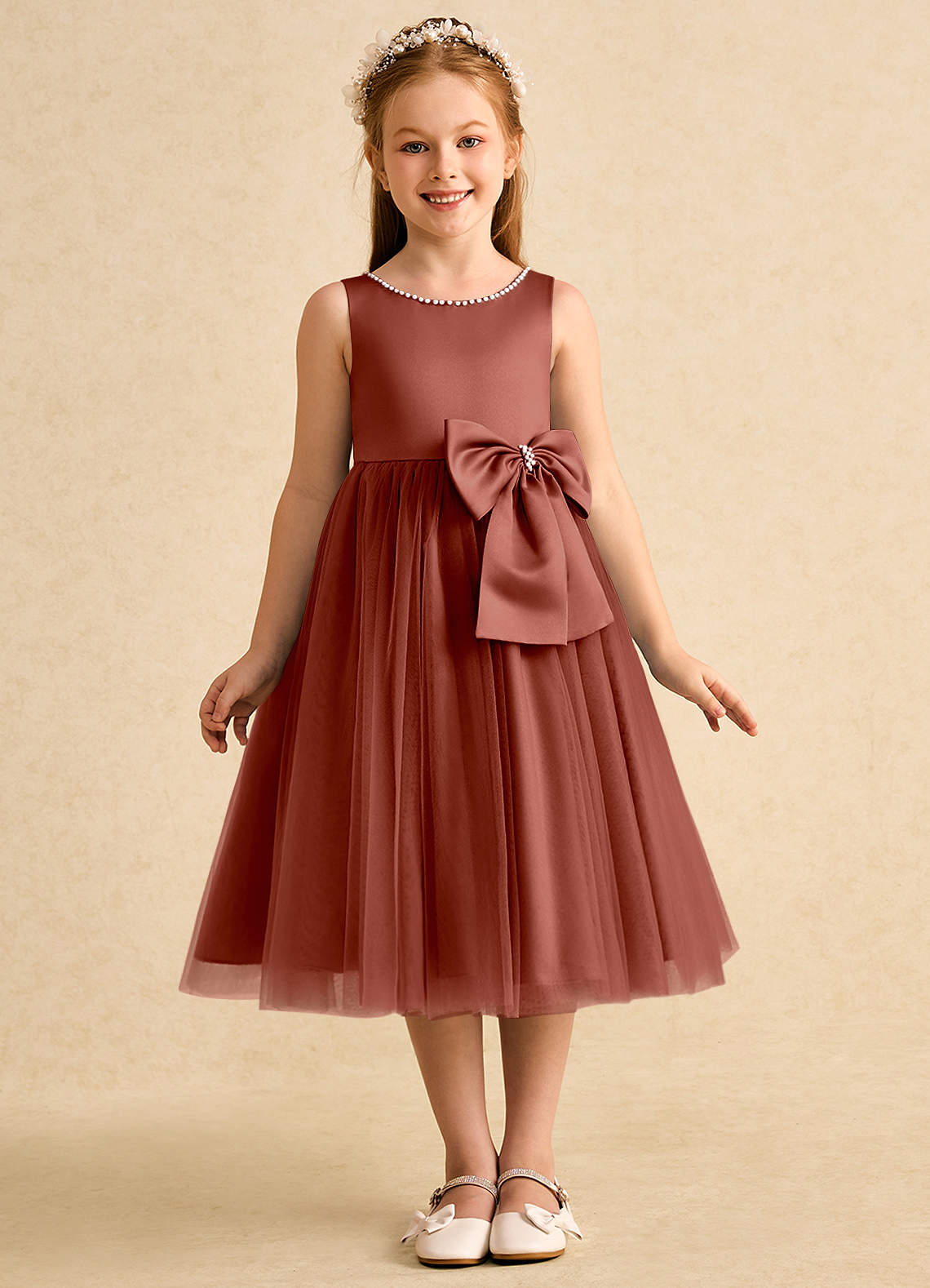Vestido de Castaño de Tul de Corte En A con Lazo