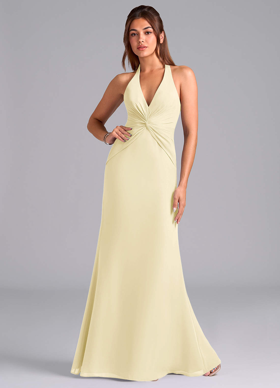 Vestido de Sorbete De Limón de Gasa de Corte Sirena con Plisado