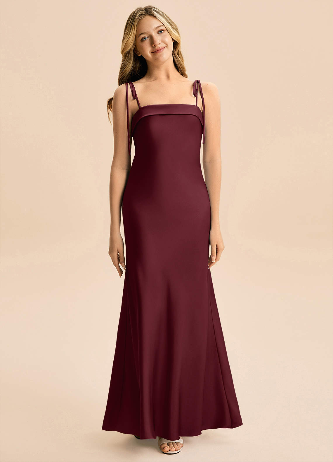 Vestido de Cabernet de Satén Elástico de Corte en A con Lazo