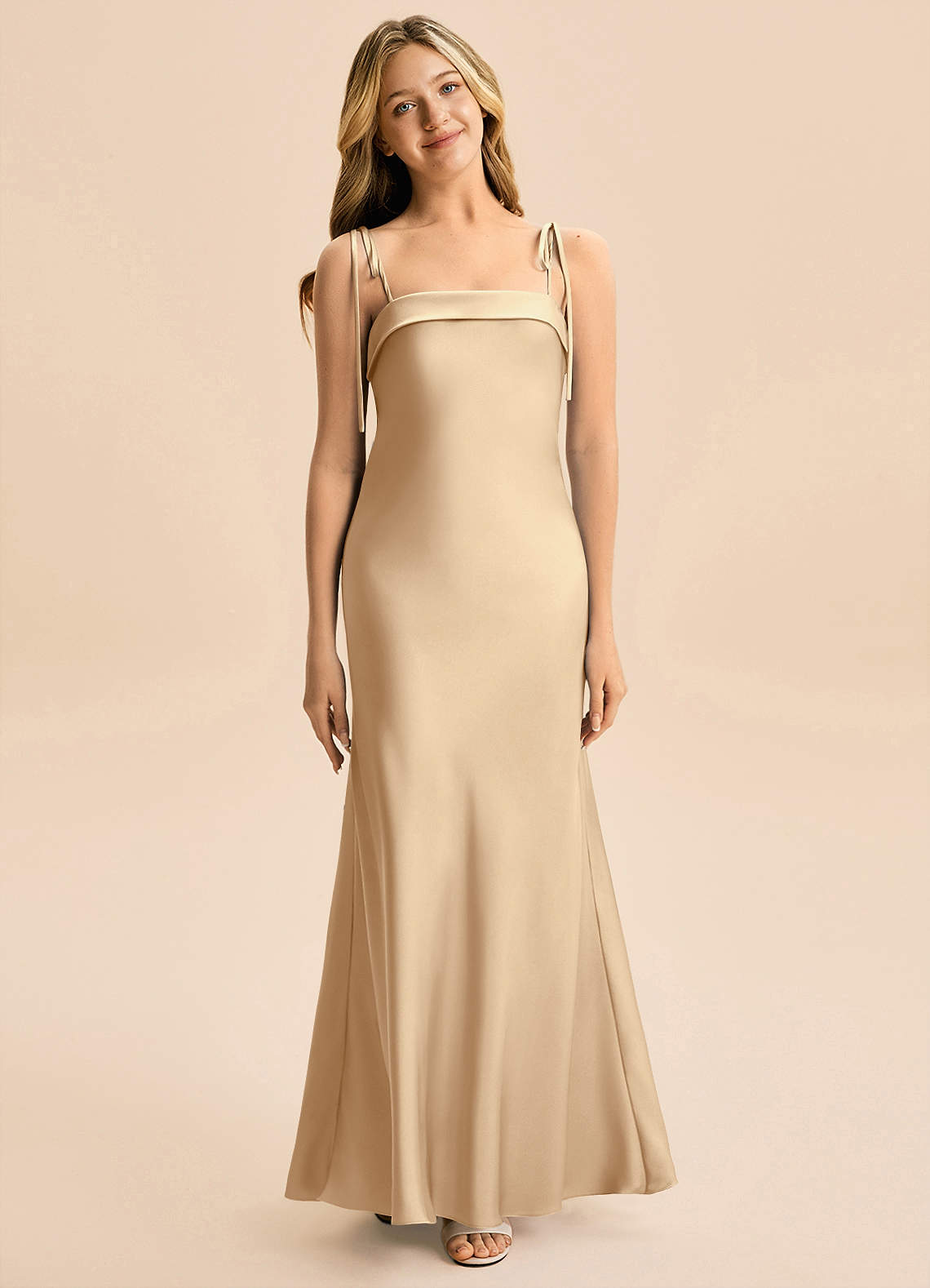 Vestido de Champán de Satén Elástico de Corte en A con Lazo