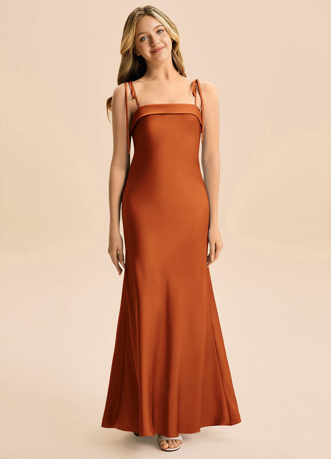 Vestido de Canela de Satén Elástico de Corte en A con Lazo