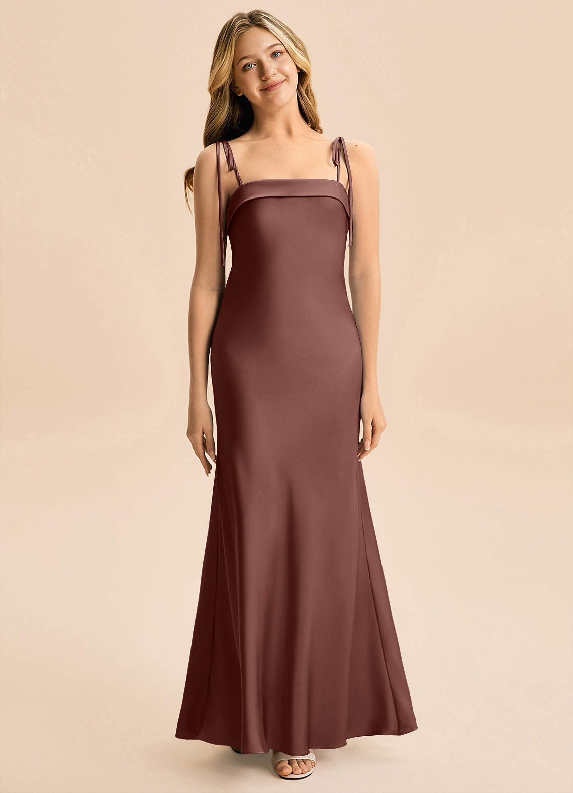 Vestido de Expresado de Satén Elástico de Corte en A con Lazo