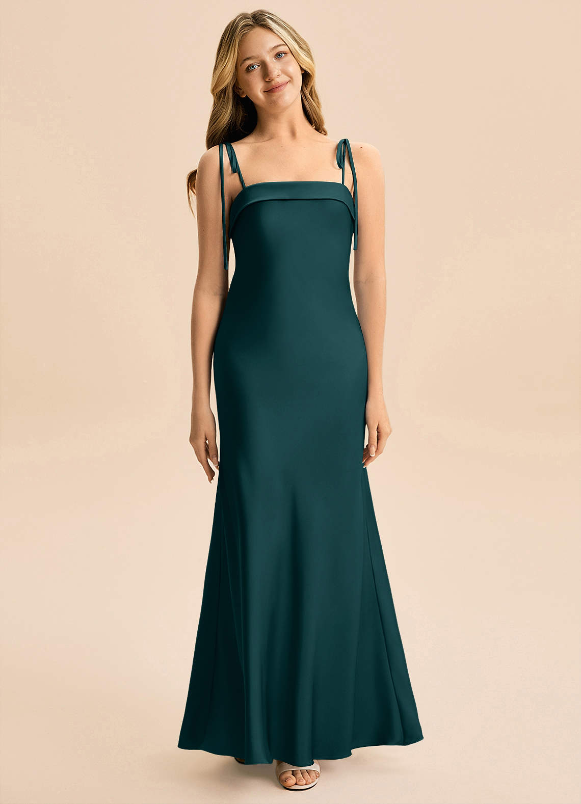 Vestido de Pino de Satén Elástico de Corte en A con Lazo