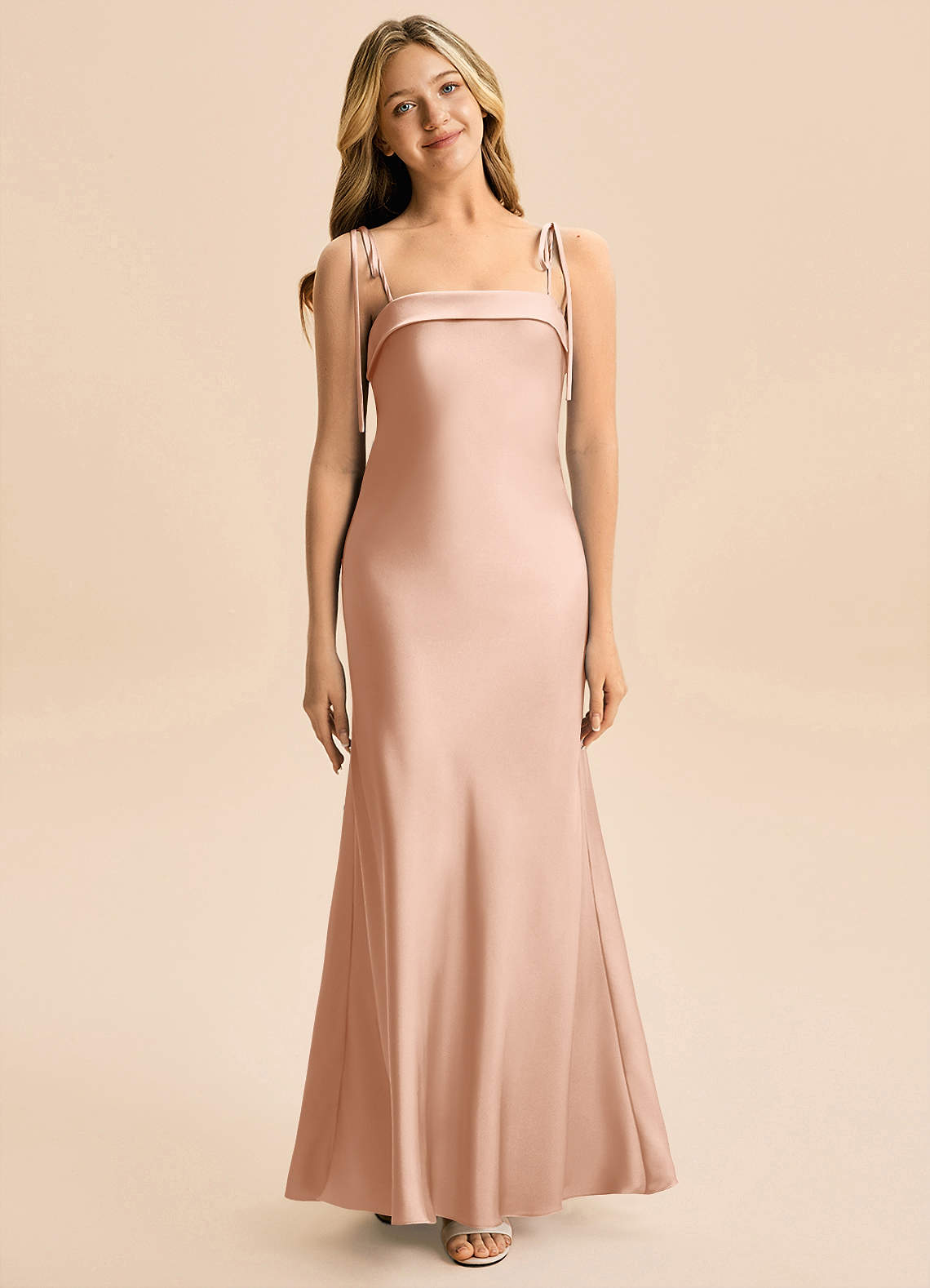 Vestido de Oro Rosa de Satén Elástico de Corte en A con Lazo