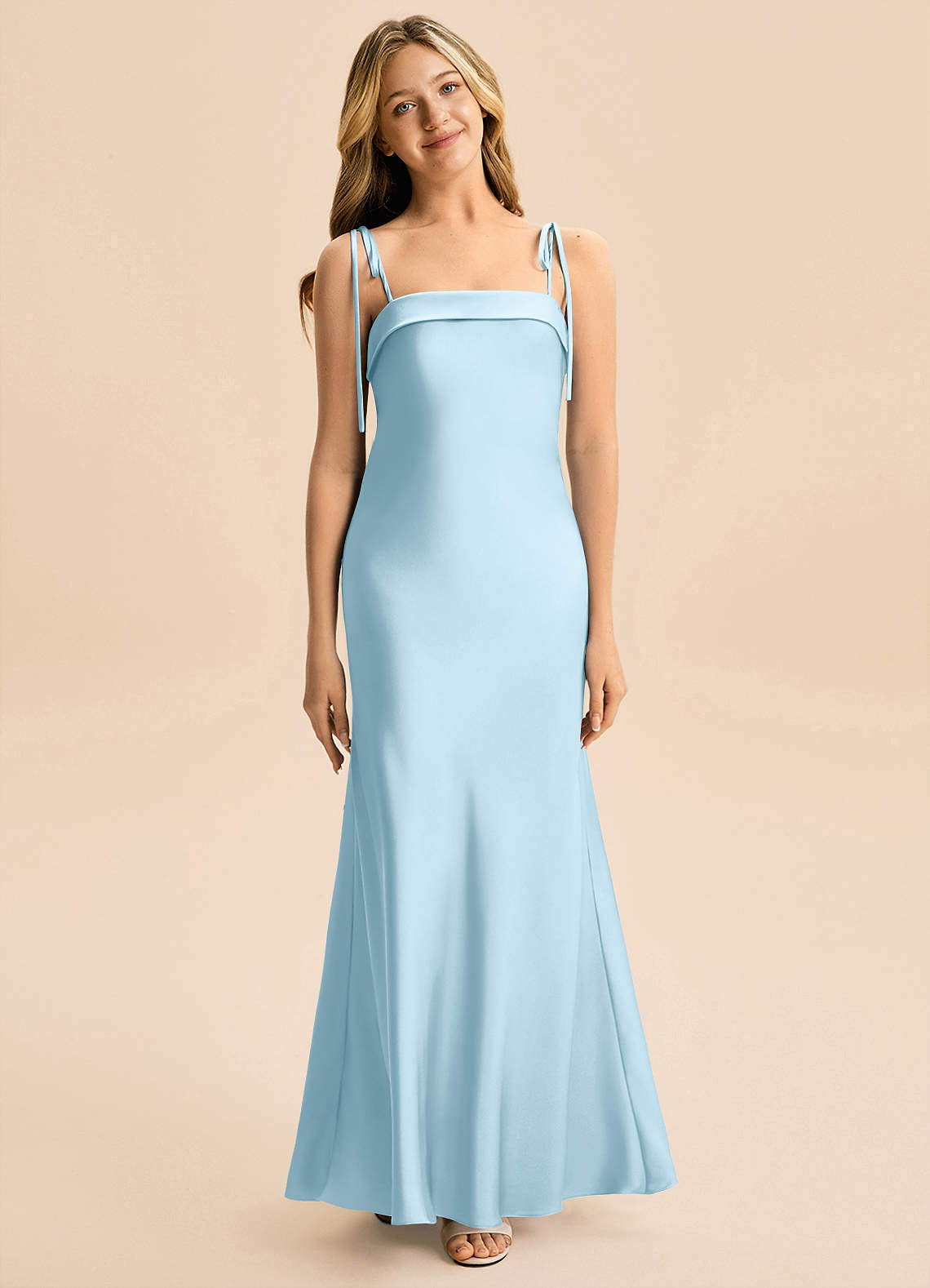 Vestido de Azul Cielo de Satén Elástico de Corte en A con Lazo